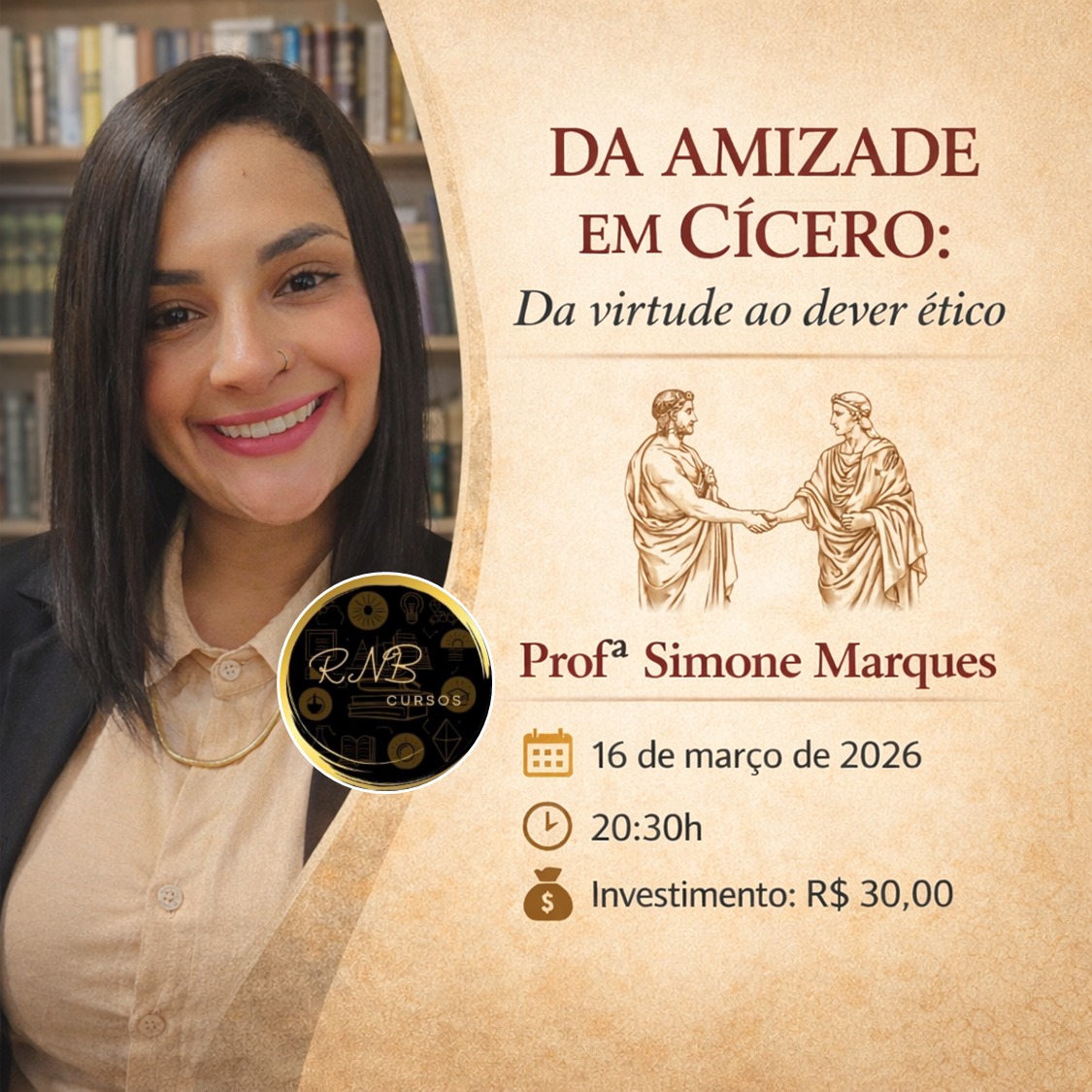 Palestra promovida pela RNB Cursos, 16 de março de 2026, 20:30h